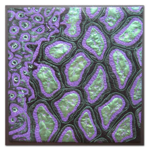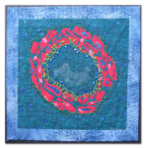 This unique collection of art quilts is inspired by scientific photographs taken by researchers at the University of Michigan Center for Organogenesis. In the course of diagnostic research, the microscope and special stains are used to examine tissues for alterations in structure or function that are characteristic of health or disease. The beauty of the photographs of these tiny biological structures, which is a fascinating combination of art and science, inspired this series of quilts. This traveling exhibit, sponsored by the Society for the Arts in Healthcare in partnership with Gifts of Art and the Center for Organogenesis, aims to honor these scientific research efforts, enrich community spaces by bringing the arts into everyday life and raise public awareness about the importance of the arts in healthcare settings.