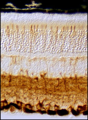 This retina of a laboratory mouse is viewed with Nomarski optics