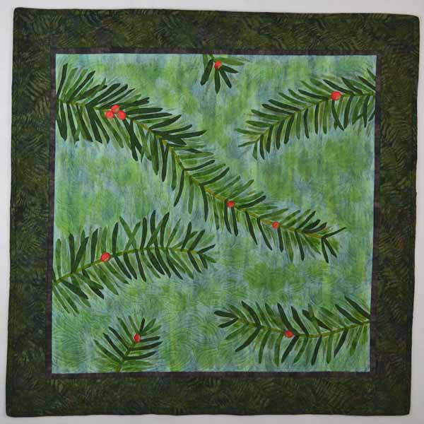 I created a leafy background for the branches of the Bayberry. The yellow blossoms progress to green immature berries and then to mature red berries. It was fun to bead the green berries and to create slightly different color and texture of red berries. The thorns are a sharp reminder when you touch Bayberry that this plant means business.