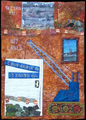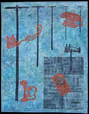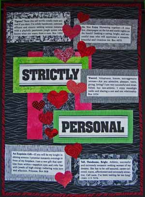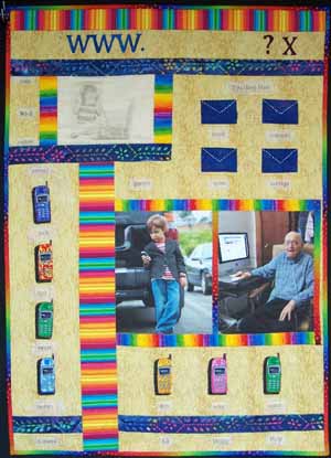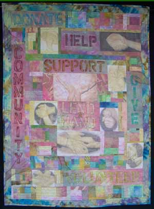 The challenge was to create a 26"x36" quilt reflecting something important happening in the world. We were to insert a 12"x17" rectangle parallel to the edges anywhere in the piece to further challenge the design process.